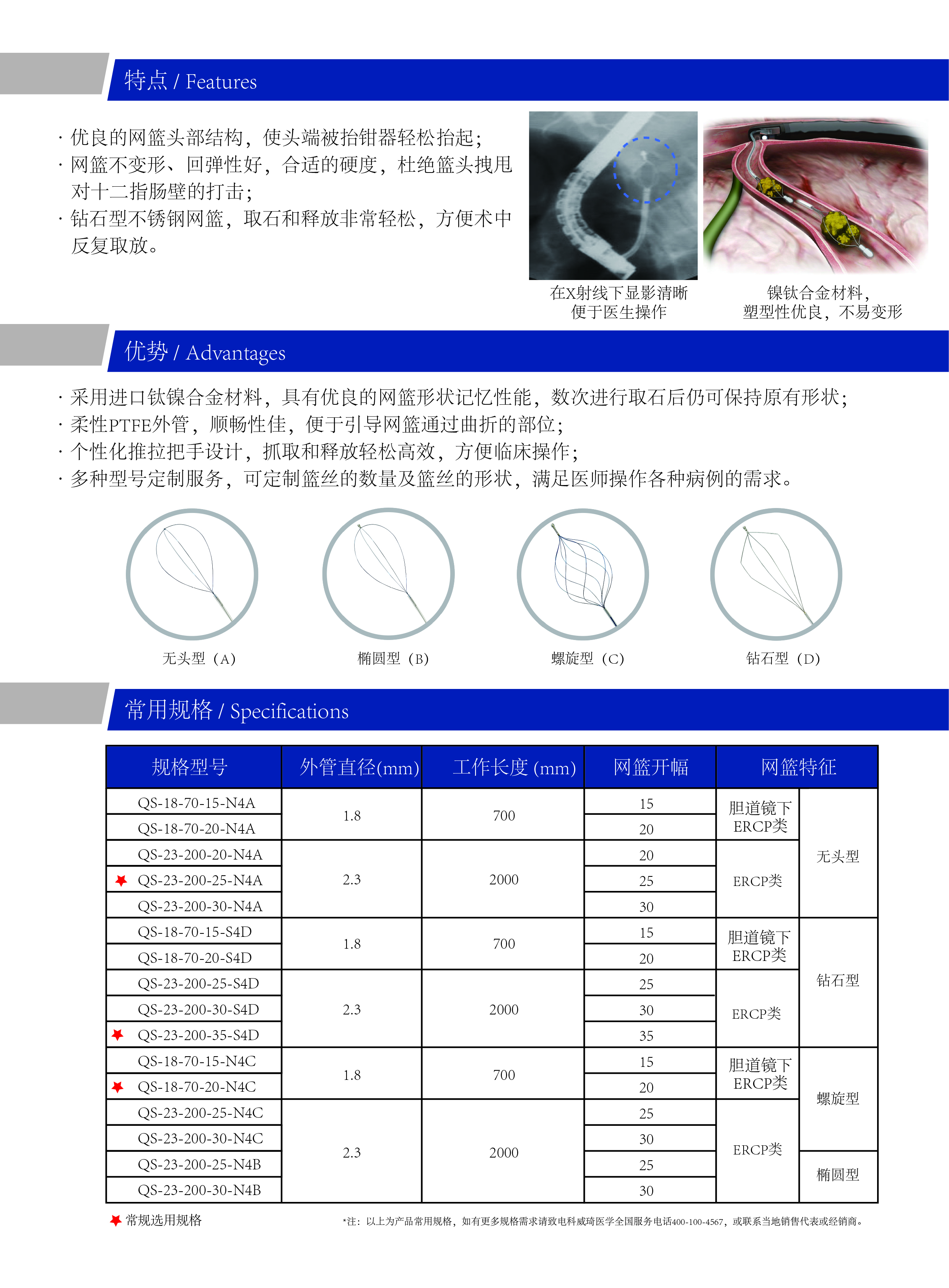 一次性使用取石网篮(如意网篮)